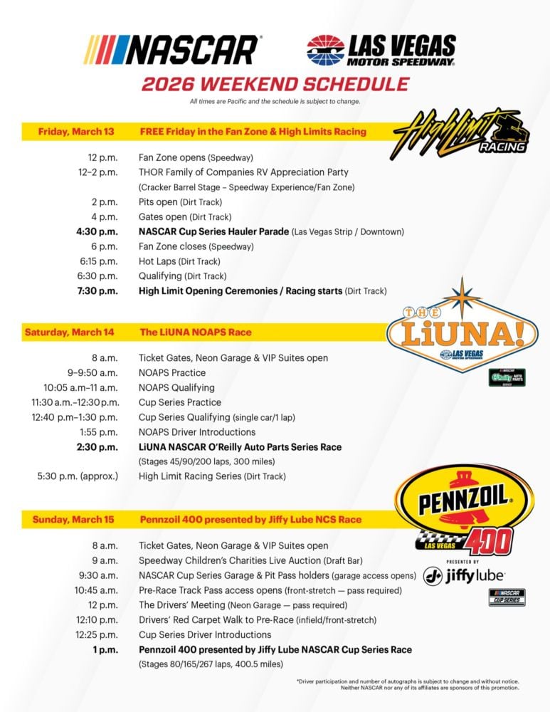 FREE Friday in the Fan Zone, High Limit Racing Series at The Dirt Track, and the Cup Hauler Parade down the Las Vegas Strip and through downtown!