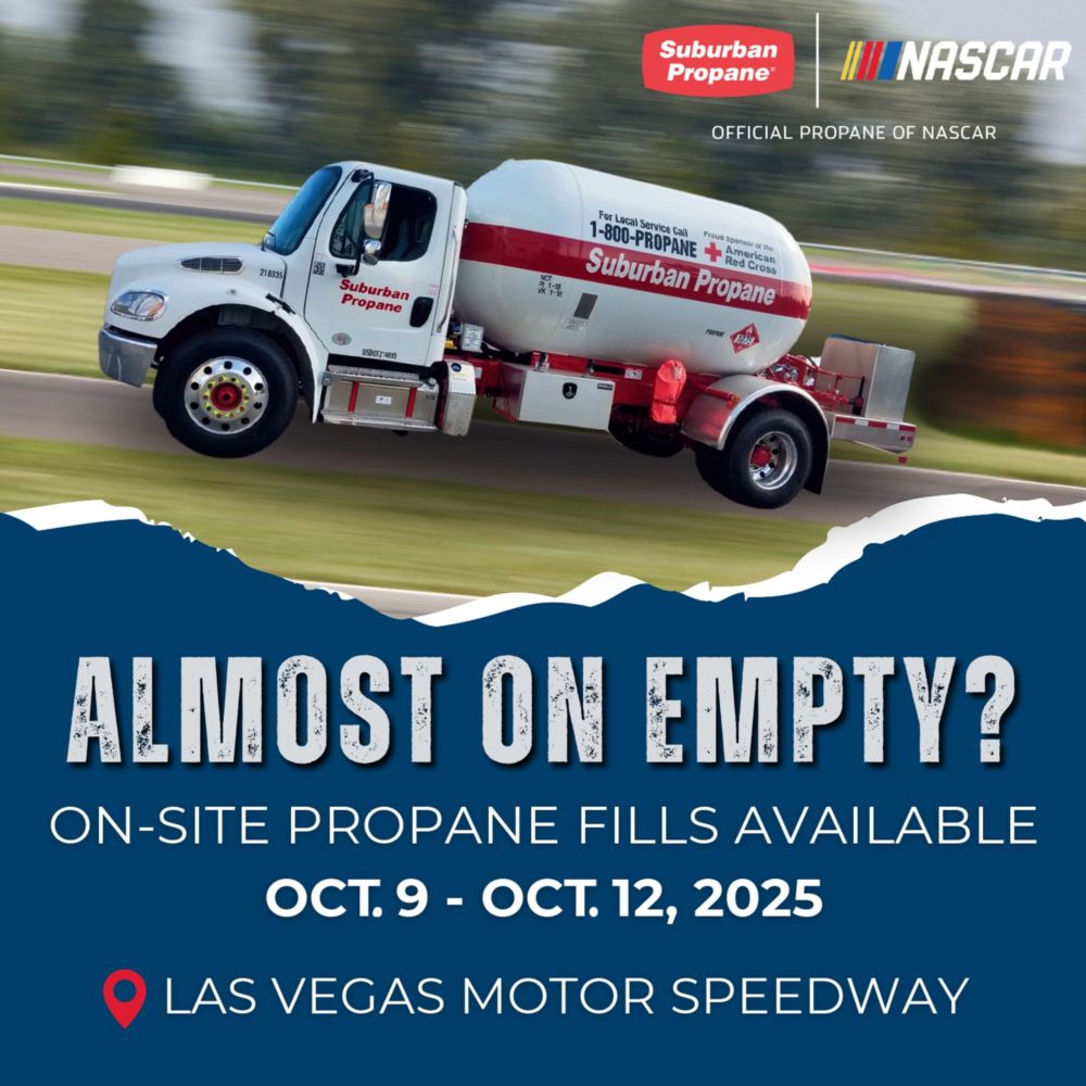 Speedway Motorsports is proud to partner with Suburban Propane to provide fill up and tank replacement service at our NASCAR weekends. Take advantage of this great new amenity! Each morning, a driver will visit Motorhome Hill and the Vegas Veranda, and stationary locations will be available in the Inner Circle and The Strip RV Lots for campers to refill. Campers can call or text for more information.