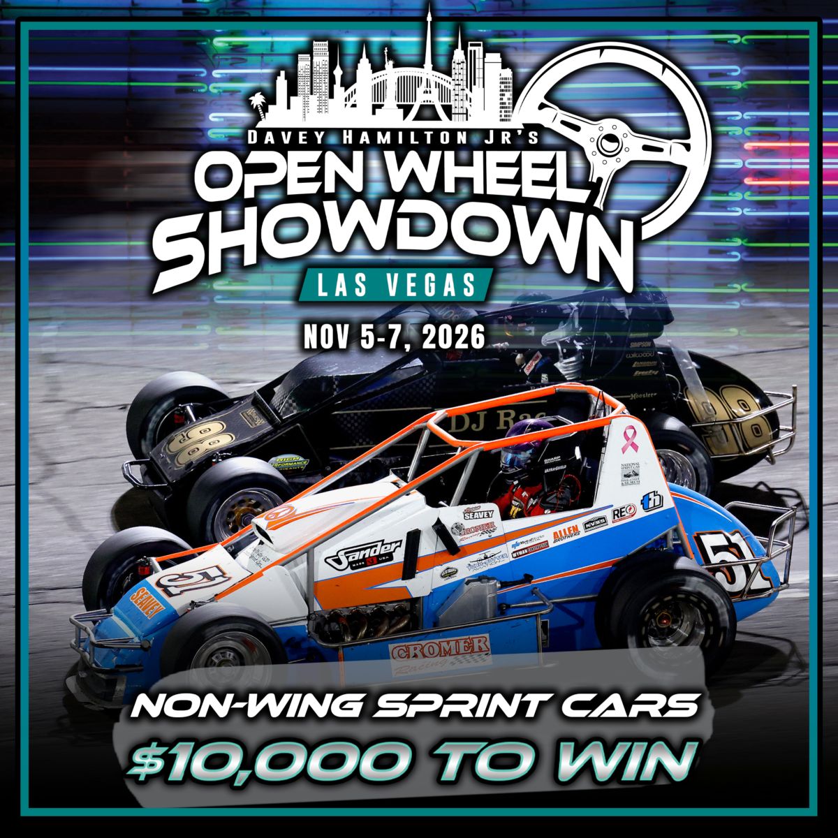 “Adding Non-Wing Sprint Cars to the Open Wheel Showdown builds upon my vision to make this the premier pavement open wheel event in the world," Promoter Davey Hamilton, Jr. said. "Not only will this be a great addition for the competitors and the fans, I am looking forward to jumping in to chase the $10,000 prize. Friday night under the lights in Las Vegas will be even more electric in 2026 with the Non-Wing Sprint Cars headlining the program and I can't wait to see the racing!”