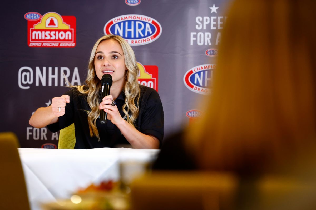 In front of a packed room of media, family and motorsports insiders, Gordon spoke about her journey in drag racing, her growing role within Ron Capps Motorsports, and the momentum she hopes to carry into this weekend’s high-stakes event.