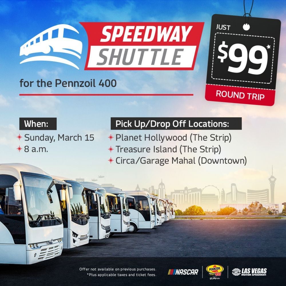 Las Vegas Motor Speedway is making race day easier than ever for fans attending the Pennzoil 400 presented by Jiffy Lube on Sunday, March 15, with the return of the Speedway Shuttle Program.