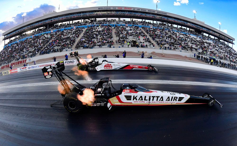 Funny Car’s Prock, the reigning world champ, is also in prime position following his Dallas win. He’ll head to Vegas with hopes of a second straight title, holding a 112-point lead over Matt Hagan. Others to watch include Jack Beckman, Ron Capps and Daniel Wilkerson.