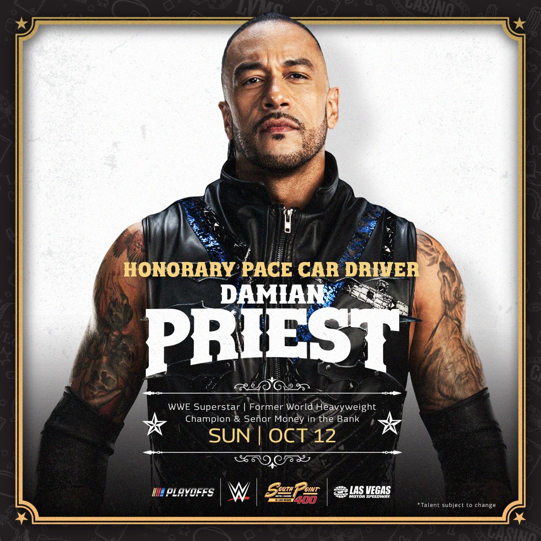 The South Point 400 NASCAR Cup Series Playoff Race at Las Vegas Motor Speedway on Sunday, October 12, will feature an electrifying crossover between two worlds of entertainment as WWE Superstar Damian Priest takes the wheel as the official pace car driver for this year’s playoff race.